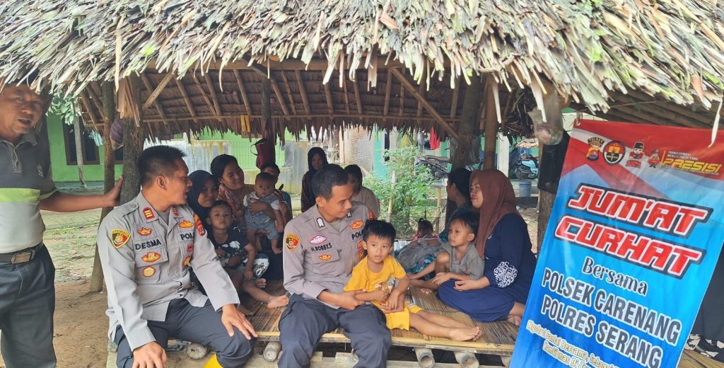 Menunjukkan komitmen untuk melayani tanpa batas, Polsek Carenang-Polres Serang melaksanakan giat Jum’at Curhat di Kampung Ujung, salah satu wilayah paling terpencil di Kecamatan Carenang. Kapolsek Carenang, AKP Desma Priatna, bersama beberapa anggotanya harus menempuh medan yang cukup sulit untuk bisa bertemu dan menyapa warga di sana.